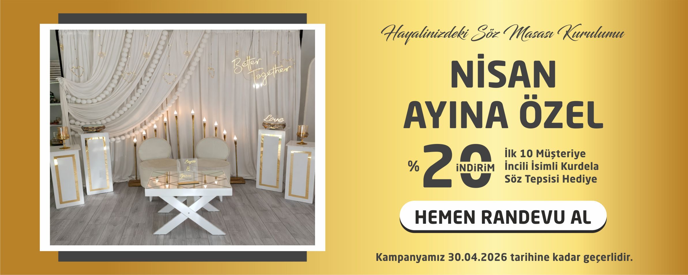 Aksaray’da eşsiz konseptlerimiz ve ekipmanlarımız ile sizlerin de unutulmaz söz, nişan organizasyonlarınızda hayallerinizi gerçekleştiriyoruz.
